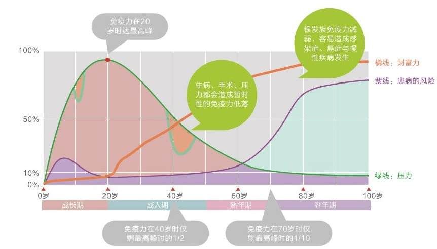 1 人的免疫力从20岁开始走下坡路,到80岁几乎没有免疫力,预先将健康的免疫细胞储存起来,将来发生严重疾病时,才能提供更好的技术帮助。